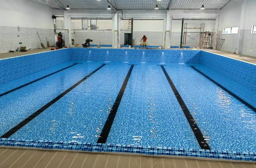 化州学校钢结构游泳池半国标胶膜游泳池25M*12M项目